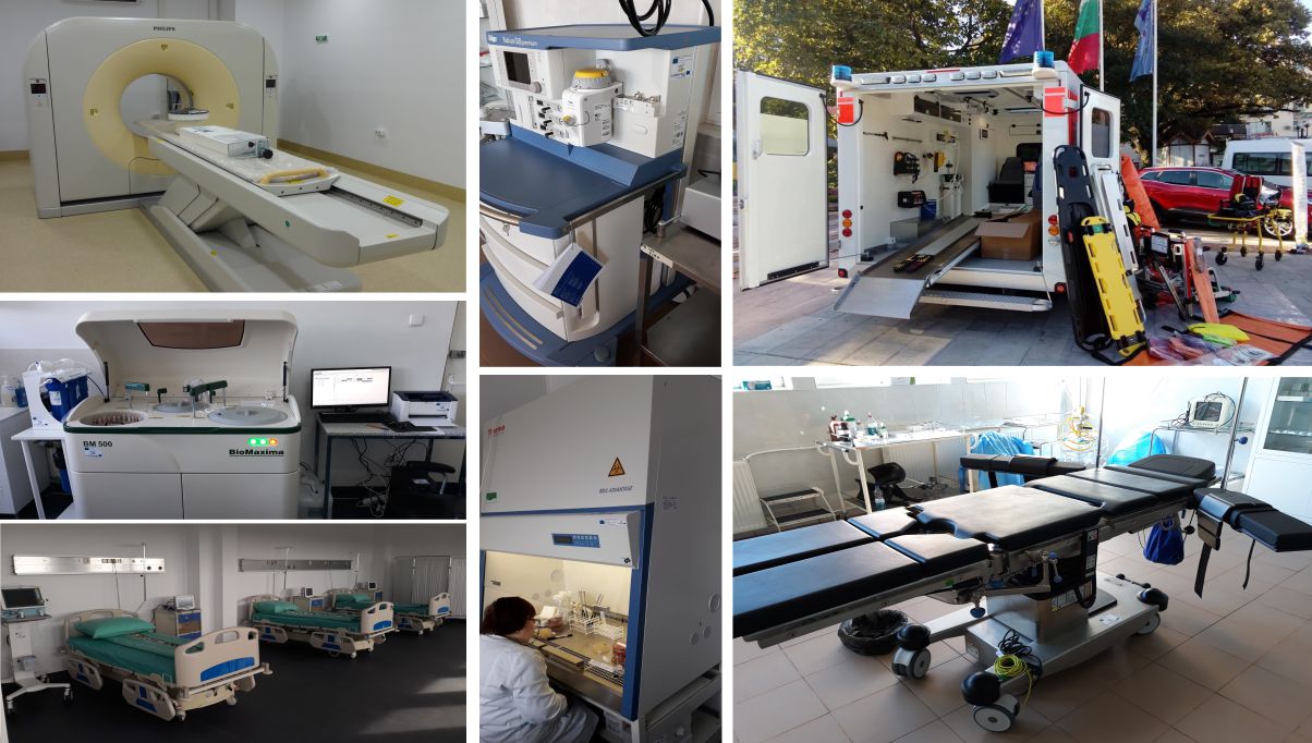 Through implementation of the project, two hospitals in Zimnicea and Svishtov were modernized(by renovating the building of the hospital in Svishtov and by purchasing medical equipment for both hospitals – electrocardiograph, general anesthesia machine, operating tables, computer tomography, ambulance type C, etc.).